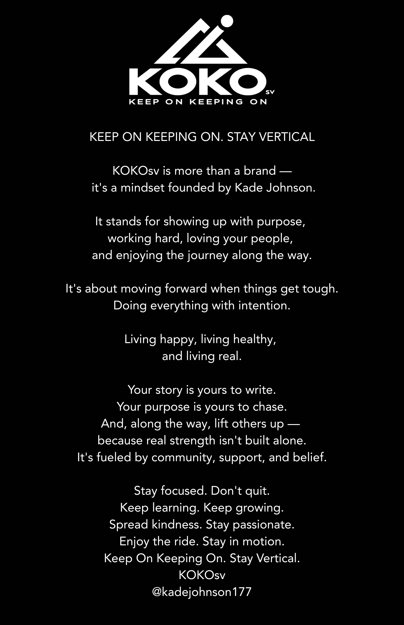 KOKOsv Merchandise -- Founded by Professional Motocross Racer Kade Johnson for those who refuse to quit! Keep On Keeping On. Stay Vertical.